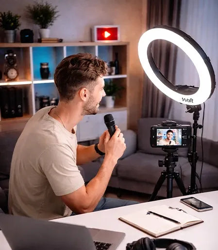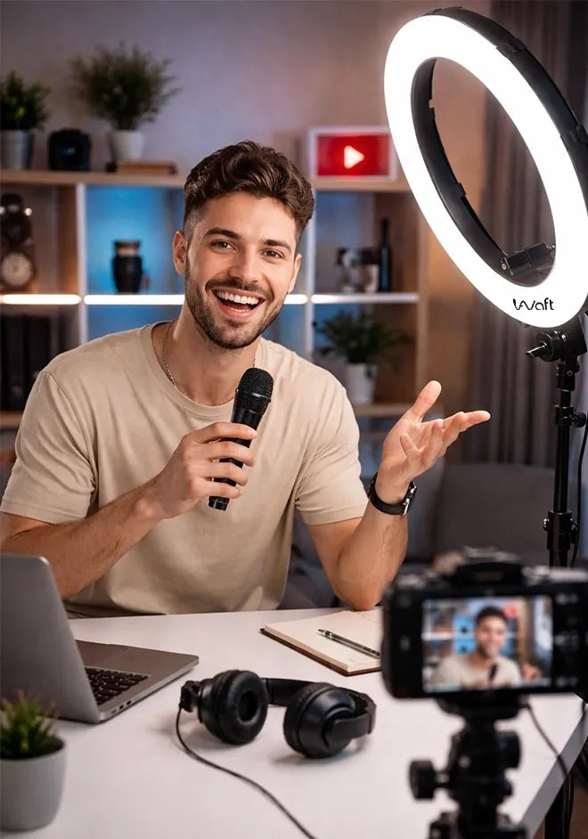 Get professional-quality lighting with the AIWaft 13-inch Ring Light, perfect for YouTubers, vloggers, makeup artists, and live streamers. This ring light features 84 white and 84 yellow LED beads, offering adjustable brightness (10-100%) and color temperatures from 2700K to 6500K for the perfect lighting setup.