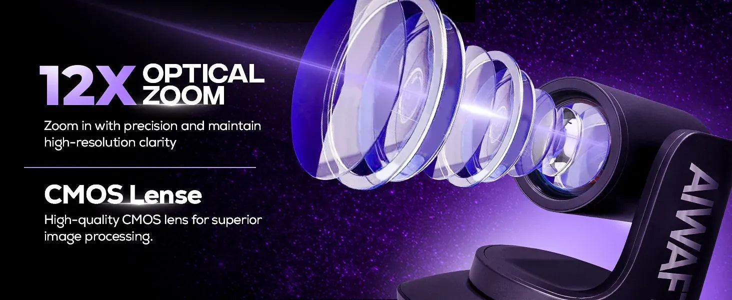 The AIWaft 4K PTZ Pro Lens Camera is a professional Ultra HD camera designed for online teaching, hybrid classrooms, live streaming, webinars, and studio recording.