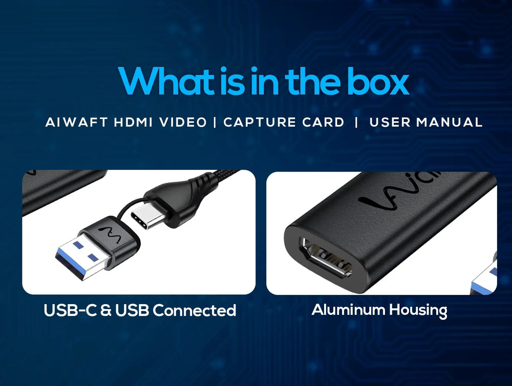 Are you looking for a high-quality video capture card for seamless streaming and recording? The AIWaft Full HD Video Capture Card is the perfect solution for creators, gamers, and live streamers. With 1080p 60FPS support, this HDMI to USB + Type-Ccapture card delivers crisp visuals and smooth performance, making it ideal for game streaming, live broadcasting, and video recording on PC, laptop, and mobile devices.