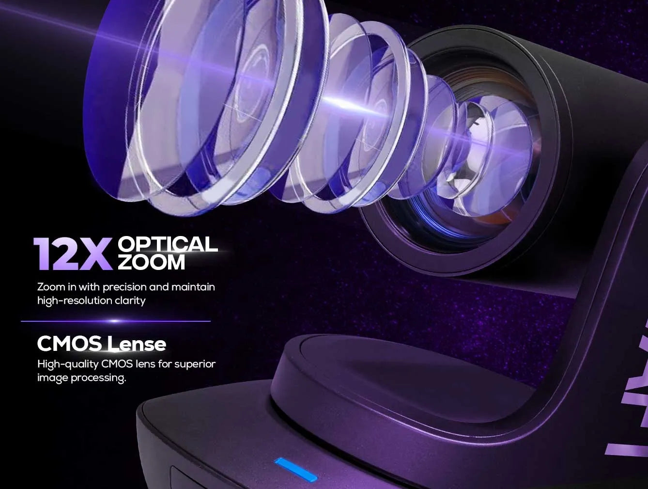 The AIWaft 4K PTZ Pro Lens Camera is a professional Ultra HD camera designed for online teaching, hybrid classrooms, live streaming, webinars, and studio recording.