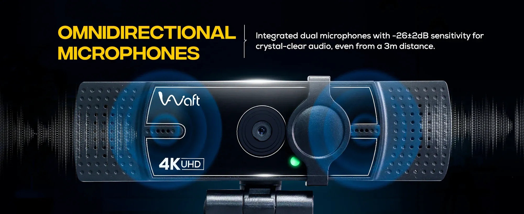 The AIWaft 4K EPTZ Webcam (VEOαCAM) delivers ultra-clear 4K video with AI Auto-Focus and dual microphones for professional-quality video calls and streaming. With EPTZ support, low-light clarity, and plug-and-play USB connectivity, it works seamlessly across Windows, macOS, Linux, and Android.