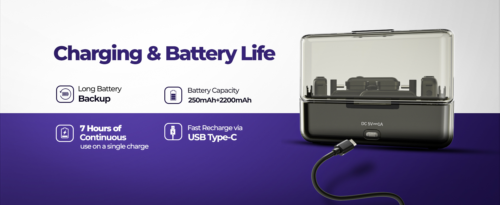 | Battery capacity | 250mAh+2200mAh |