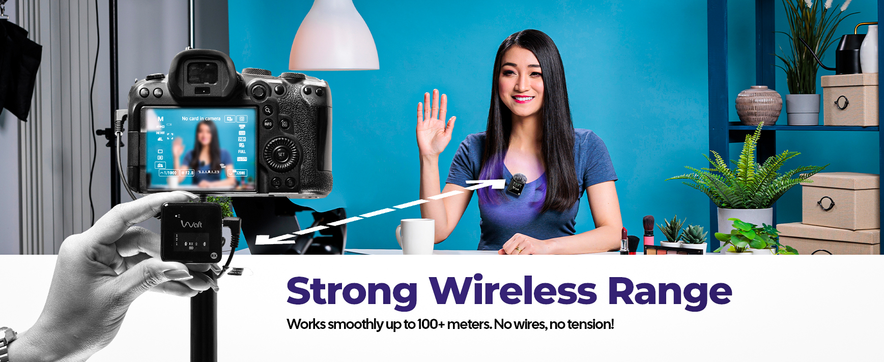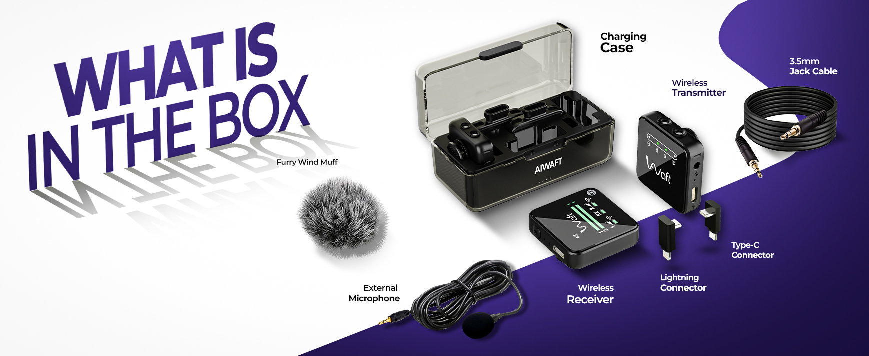AIWaft Wave Wireless Microphone with Noise Reduction, Omnidirectional Recording, Adjustable Gain, 48KHz Sampling Rate, 90m Transmission, ≤20ms Delay, 7H Battery, Type-C Fast Charging – Compatible with Mobile, Camera, YouTube, Vlogging & Interviews
